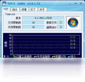 TCPZ是一款半开连接数的查看工具。利用TCPZ我们可以很清晰的看到当前系统的连接数。很多用户对于系统的半开连接数都不满意,特别是喜欢BT下载和eMule下载的用户更甚。