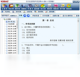 本系统包括会计基础知识、财经法规、会计实务三个模块。当你运行软件时,在主界面可以选择某个模块进入。进入模块后是章节练习状态,你只要选择所要练习的章节,系统就会显示该章节的试题,你现在就可以练习了。