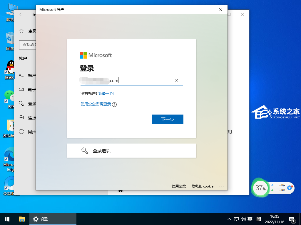 13、按要求输入微软账户,显示 windows设备密码时,如没设置可放空点击”下一步“,输入PIN码。