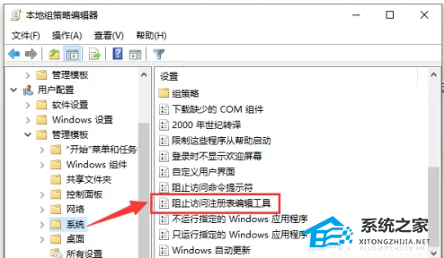 4、双击右边界面的“阻止访问注册表编辑工具”。