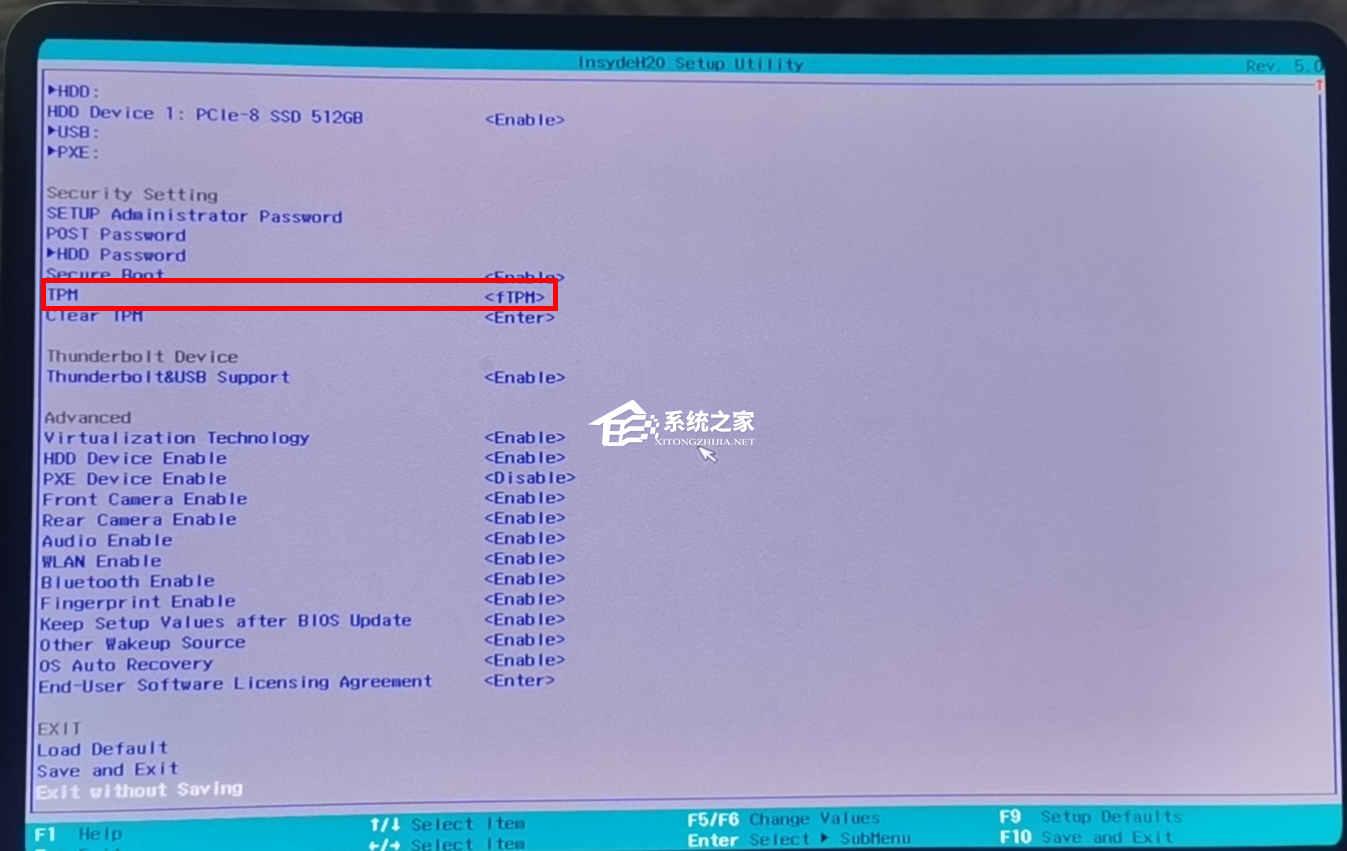 如果PIN显示不可用,建议进入BIOS界面查看(进入BIOS界面方法:计算机关机后,按一下开机键,然后不停点按F2),进入BIOS界面后如下图,检查红框内容是否一致,若不同,请更改一致后按F10-Yes后退出。