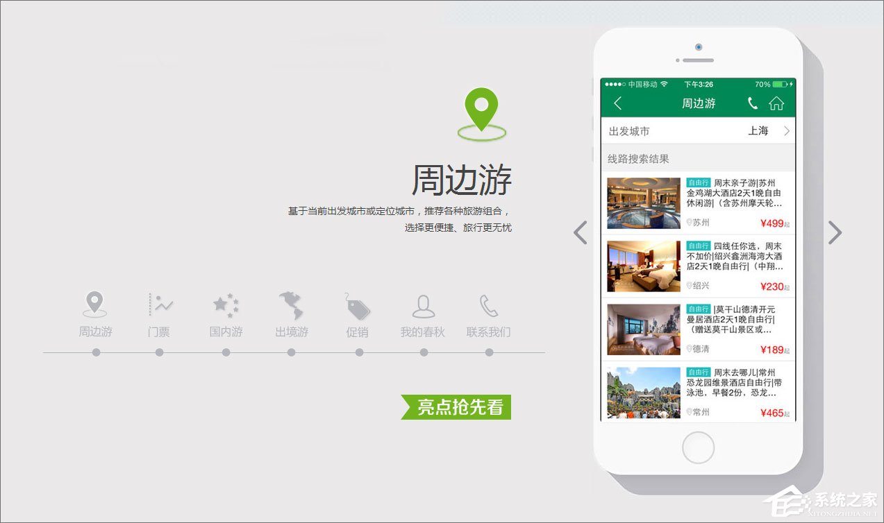 通过移动客户端春秋旅游提供吃住行游购娱一站式解决方案 , 随时随地为旅行者提供国内外旅游、门票、机票、酒店、度假、接送机、团购等旅行信息的全面覆盖和便捷预订服务。