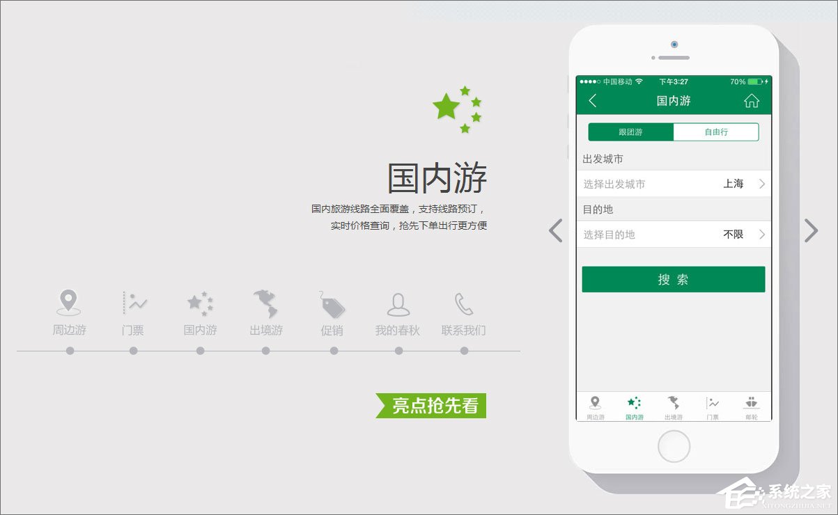 春秋旅游移动客户端专业提供跟团游、自由行、国内游、出境游、门票、机票、酒店、邮轮游等旅游产品查询及预定服务,支持在线预订国内旅游,海外度假和景点门票。
