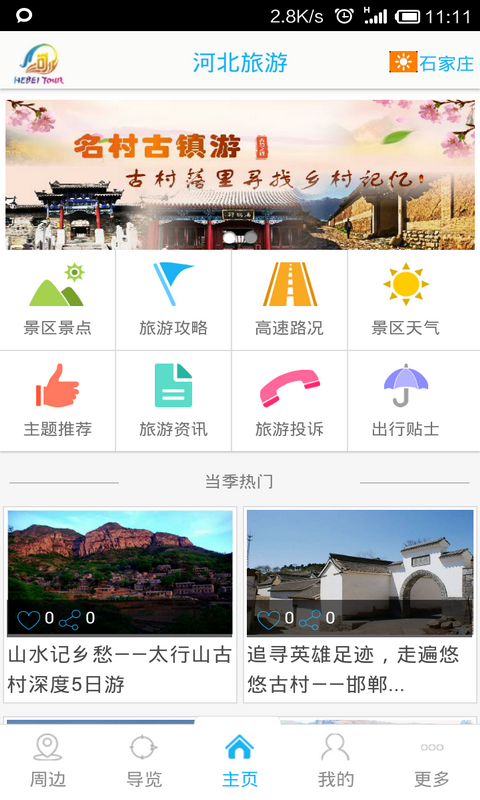 河北旅游是河北省旅游局为推动河北省智慧旅游,委托河北创巨圆科技有限公司打造运营的河北旅游官方手机客户端,该客户端为用户提供门票预定、电子导游、攻略、导航、高速路况、景区天气等全方位旅游服务,操作简单,使用便捷,非常好用。