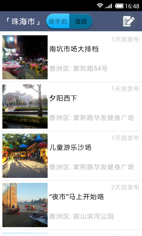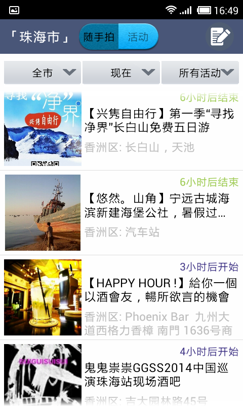 此刻城事是我们精心为安卓手机网友们打造的一款活动、见闻分享软件。机友们通过它可以查看本地附近有意思的一些活动或者见闻,也可以上传图片、文字给大家分享,随时随地了解发生在身边有意思的事情,是本程序开发的初衷,希望你们能够喜欢。