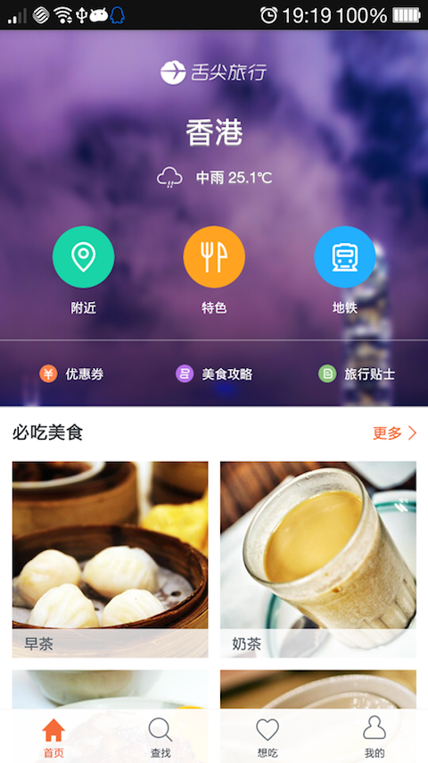 舌尖旅行,让旅行更美味,出境游用户首选,生而为人,天性让我们除了用大脑,还用胃来思考,因此当你行走在路上,身体在旅行,舌尖也要旅行,所以,这些便成了我们存在的意义,该软件是全球首款专注于出境游美食推荐的APP,产品采用大数据决策引擎,综合旅游攻略、天气交通、季节气候、旅游心情等因素,为旅行者推荐旅行途中最值得品尝的特色美食。