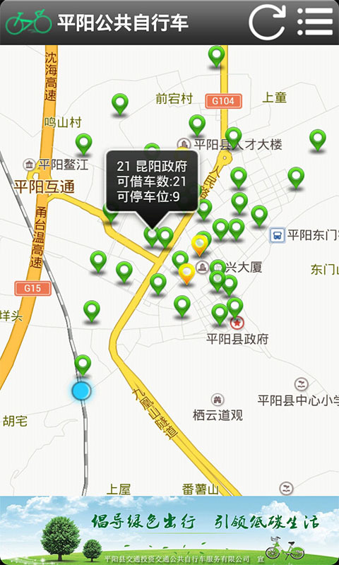 这款应用能实时查询到温州市平阳县公共自行车所有站点的可借车数,可停车位,更好的引导人们使用公共自行车,方便出行。