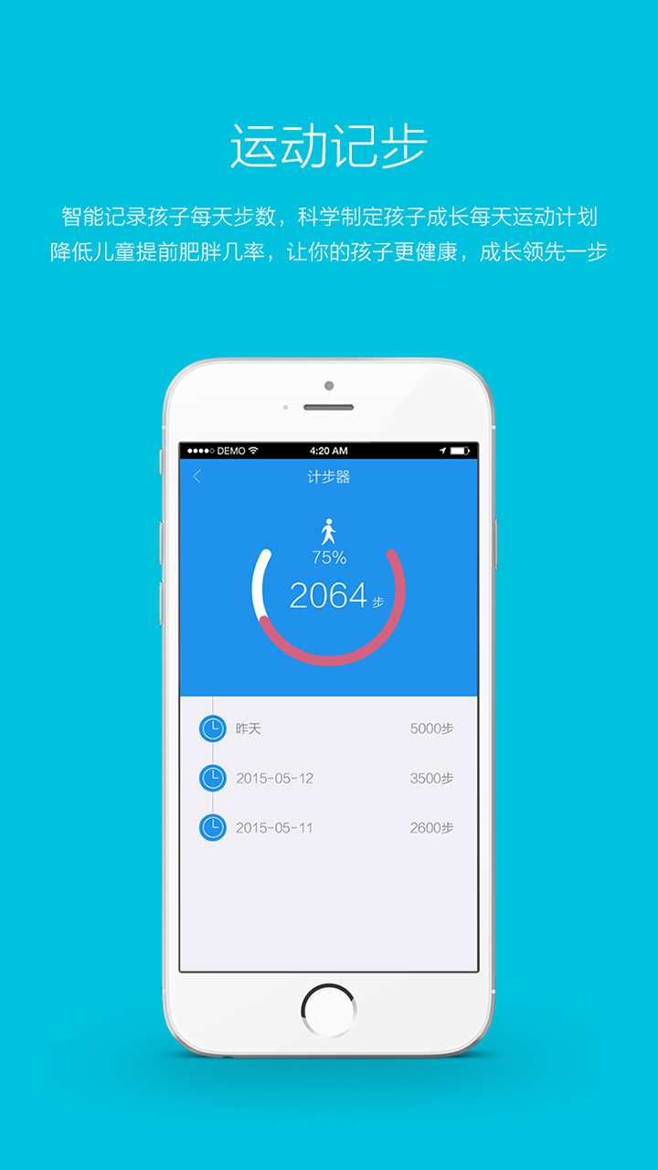 智能记录孩子每天步数,科学制定孩子成长每天运动计划。