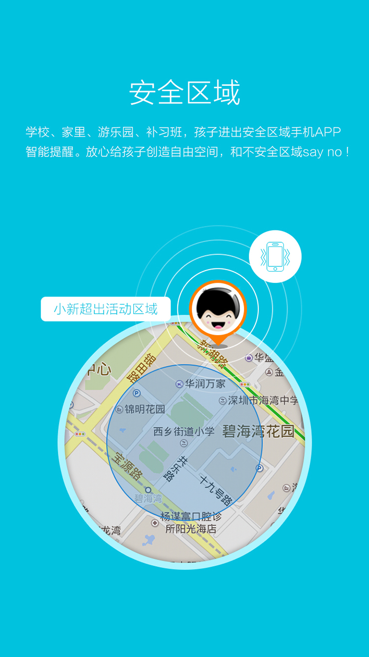 多重方式混合定位,定位更精准,手机APP智能监督提醒,孩子行踪一目了然。
