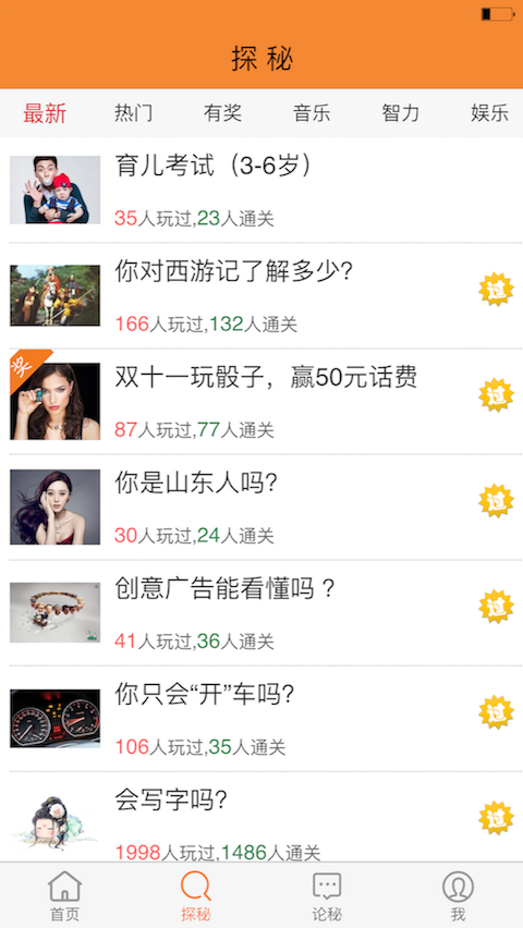 秘盒app是一款游戏互动平台,用户与用户之间可以相互进行游戏,你可以发布谜题或者找寻它们进行解答,一般包括问答题、选择题与拼图题三大类,可以训练人的逻辑思维判断能力,秘盒促进人与人之间的交互,赶快下载与朋友们一起娱乐吧。