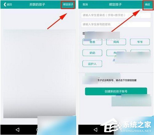 2)再点击【绑定孩子】,输入孩子的登录名和密码等点击【确定】即可。(如下图)