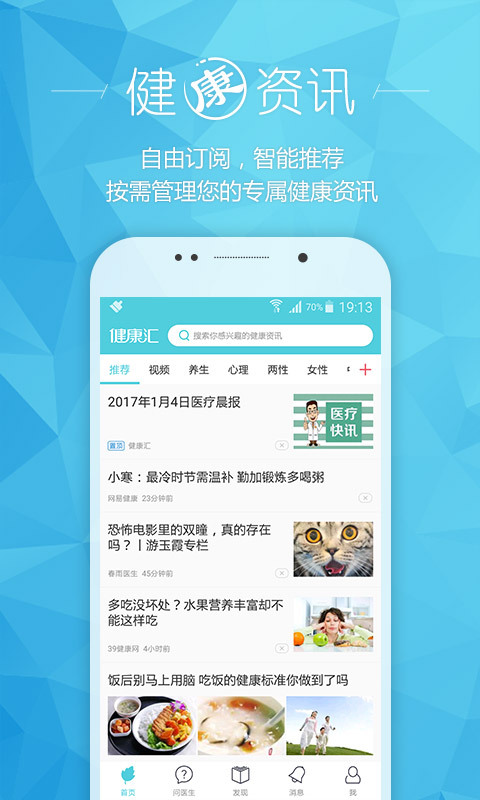 非常深入的医疗健康视频资讯 提供有价值的健康资讯和视频、在线问诊、权威百科、医院排名、挂号大全及附近药店; 宗旨传递有价值的医疗健康信息!