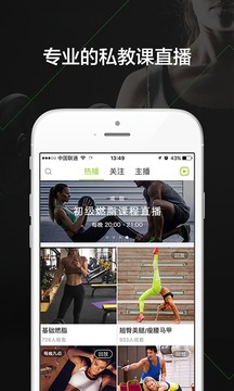 减脂塑形增肌体能实时教学、12种精品课程难度划分、数十种训练课程真人互动
