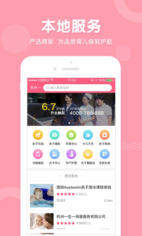 8、【柚妈专享】定位同城周边母婴服务,月嫂预定、月子中心、早教摄影好店推荐,折扣100%;提供特价母婴服务&商品,甩淘宝售价几条街!