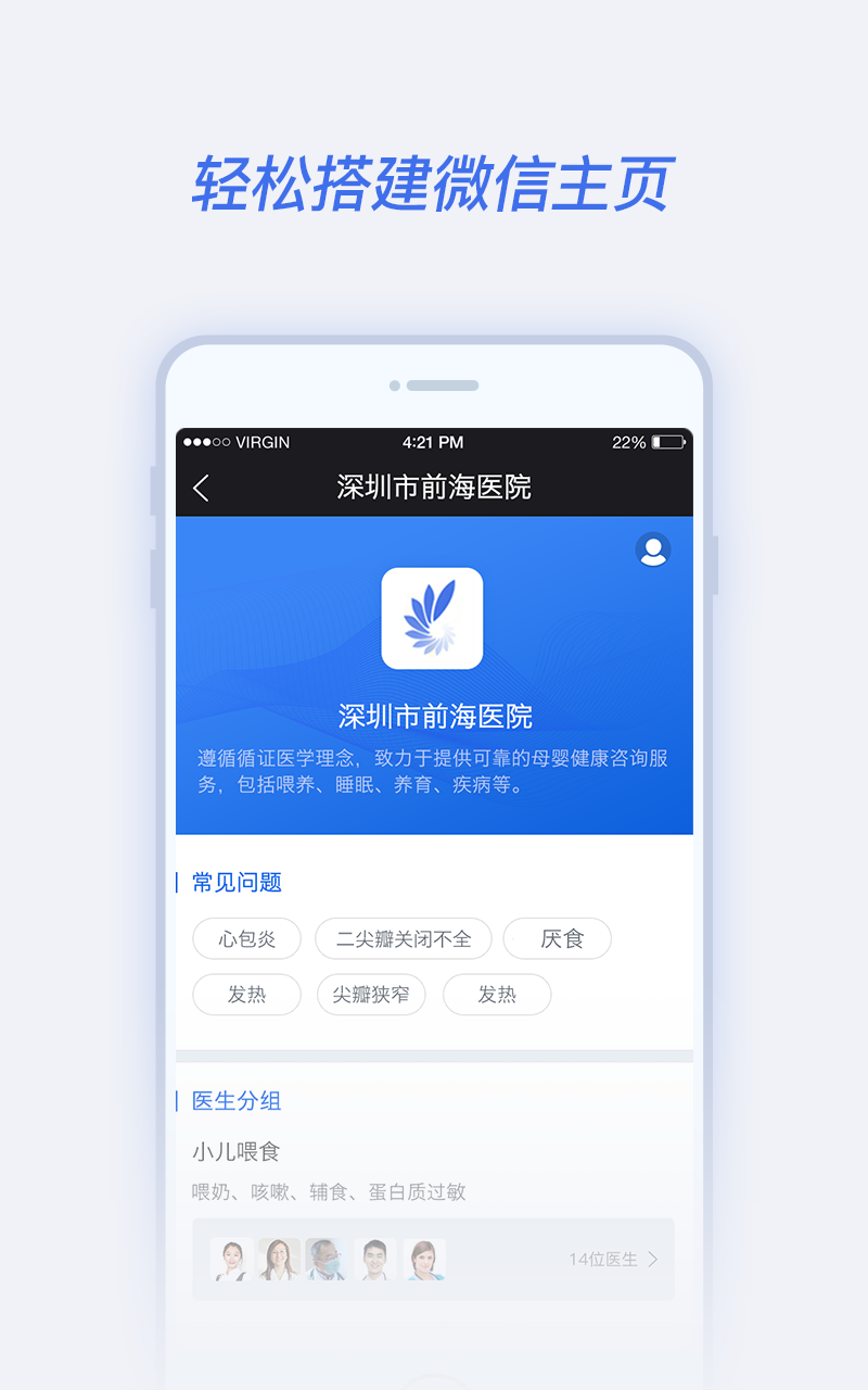 4、快速建立医生个人/团队主页,还可以使用免费匿名电话、随访等功能;