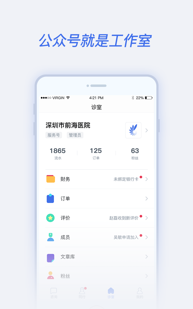 2、快速组建团队,团队一起管理公众号和患者,团队协作更高效;