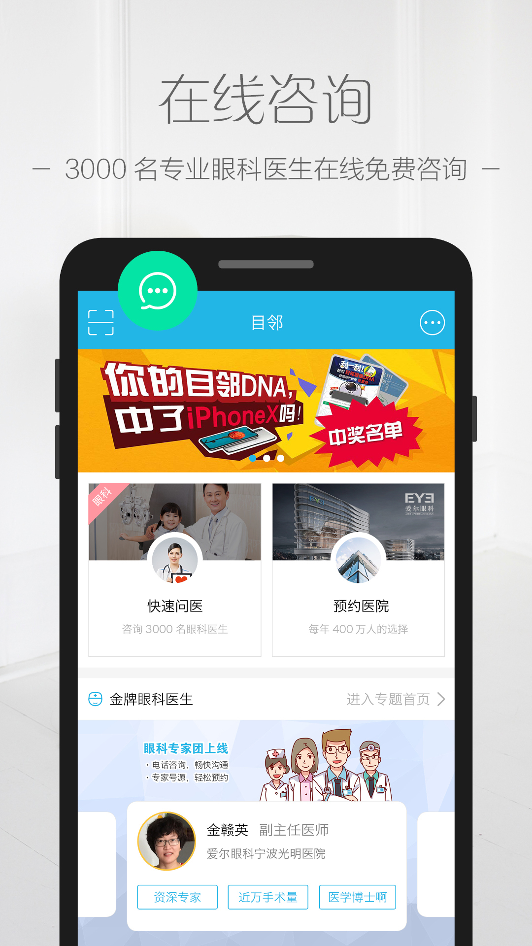 1、【快速问医】在线提问,3000名专业眼科医生实时为您解答眼病问题。