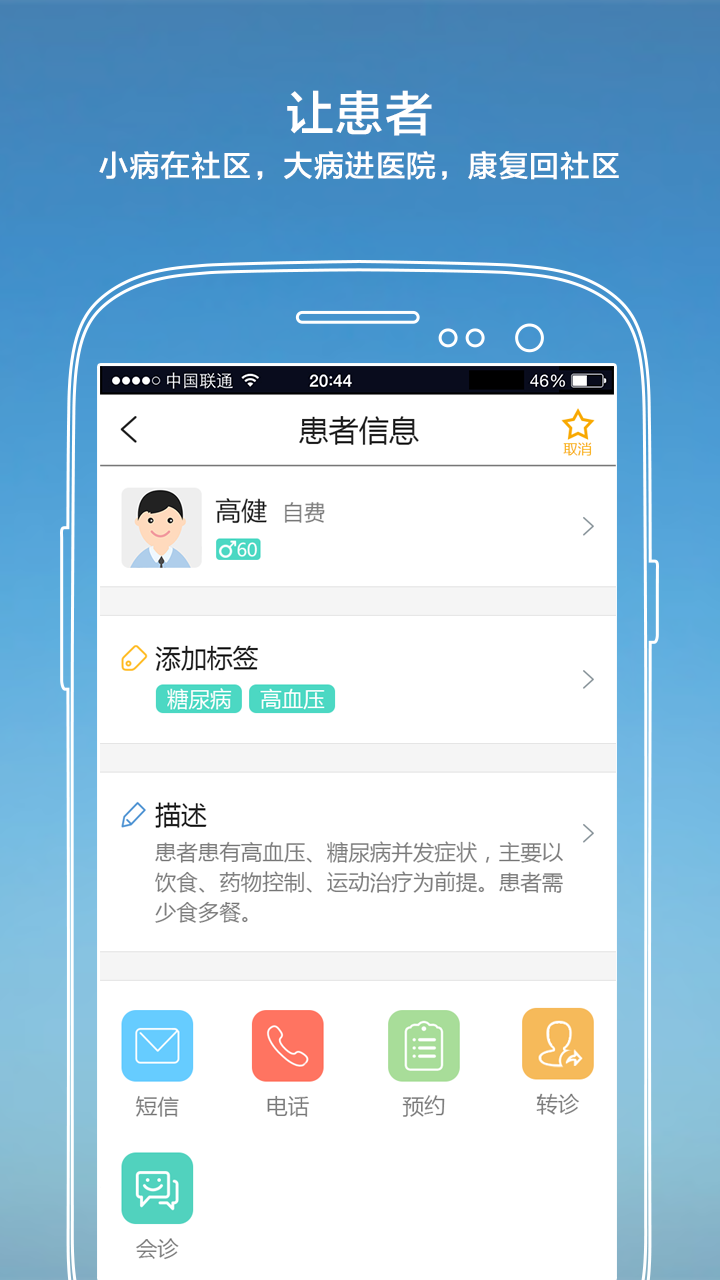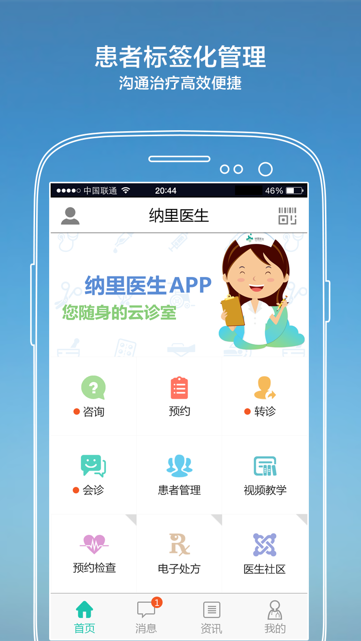 您可以通过这个纳里医生与您的患者粉丝进行在线交流,可以成为他们的“私人医生”,还可以通过平台和上下级医院的医生进行远程协作,解决诊疗问题,看病更省事,服务更便捷。