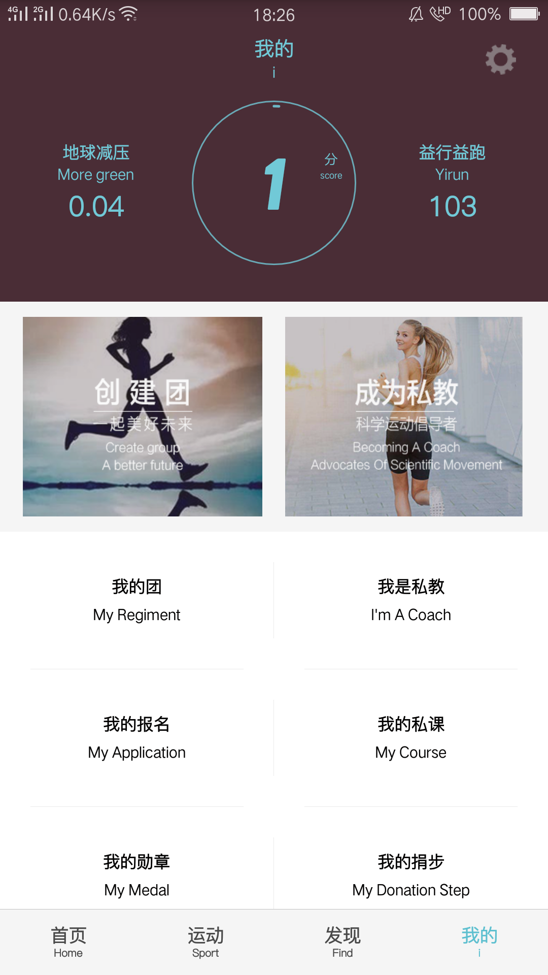 1、每天行跑为自己加分