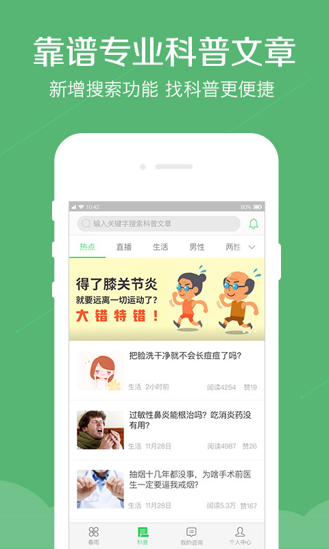 1、权威:春雨拥有目前世界上最全的移动疾病数据库,所有疾病数据均出自权威医典与官方数据库;