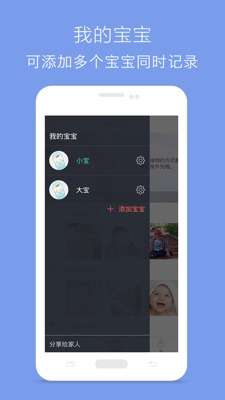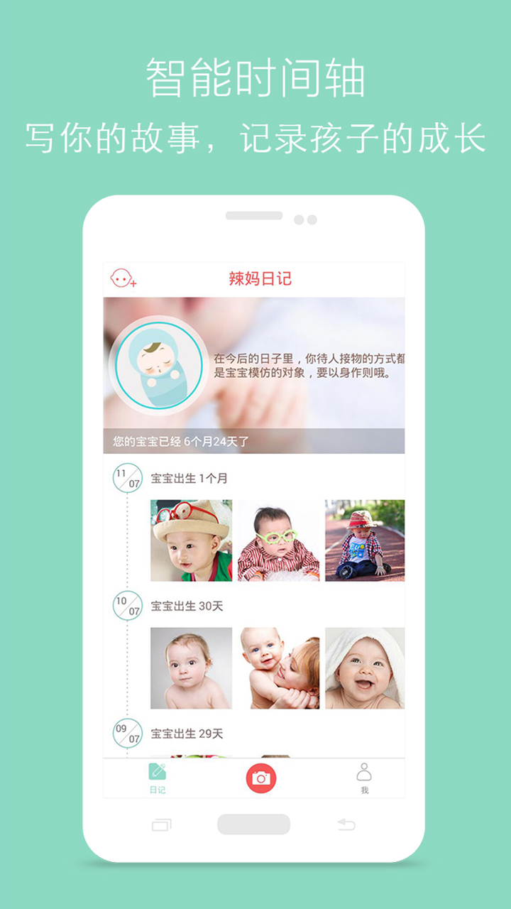- 亲友分享:亲友无需在下载APP,通过辣妈日记微信公众即可实时查看宝宝的最新动态。