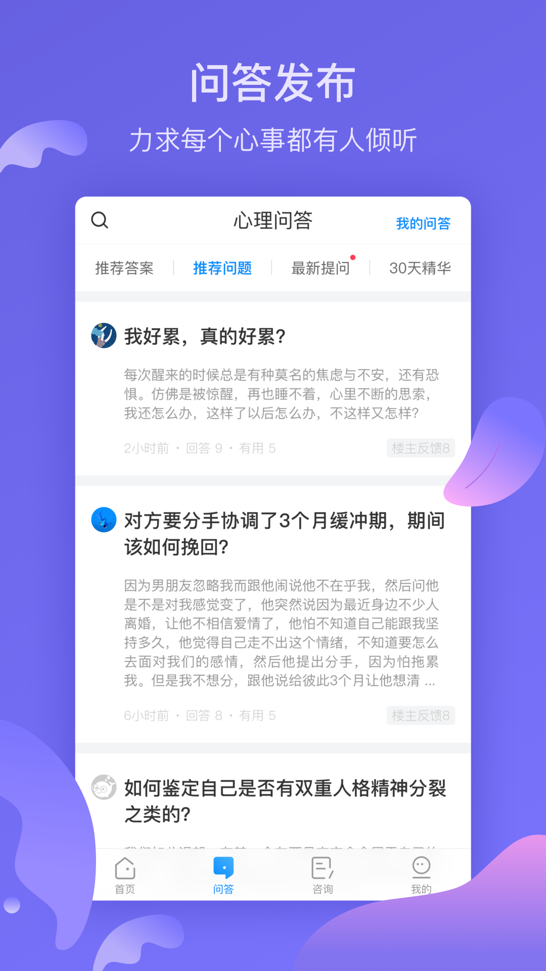 连接全国5000多位心理咨询师,为你随时随地专业解答心事;