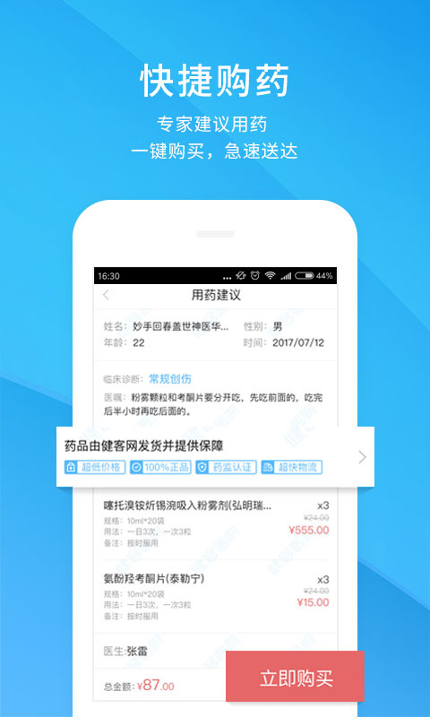 执业医师指导购药,支持货到付款。健客医生由广东健客医药有限公司倾力打造。健客网上药店是全国性的网上药店之一,曾被央视采访,获得“电商模式创新奖”、“十大网上药店金购物车奖”是一家合格安全的网上购药平台,也是值得你信赖的健康服务平台!