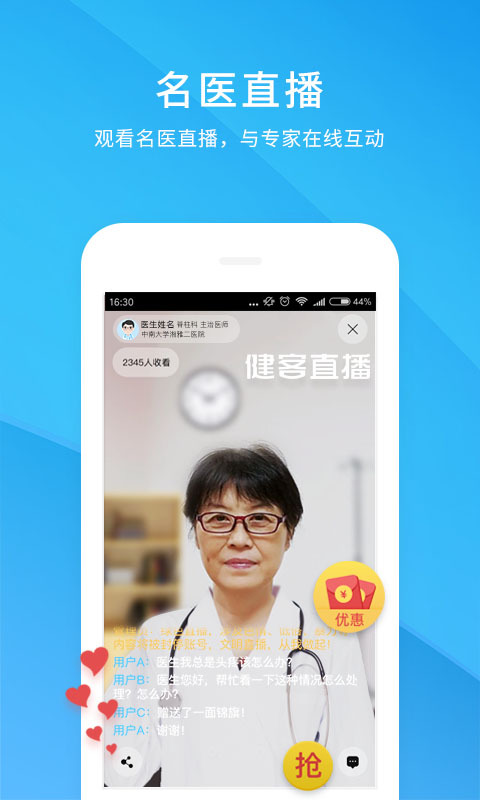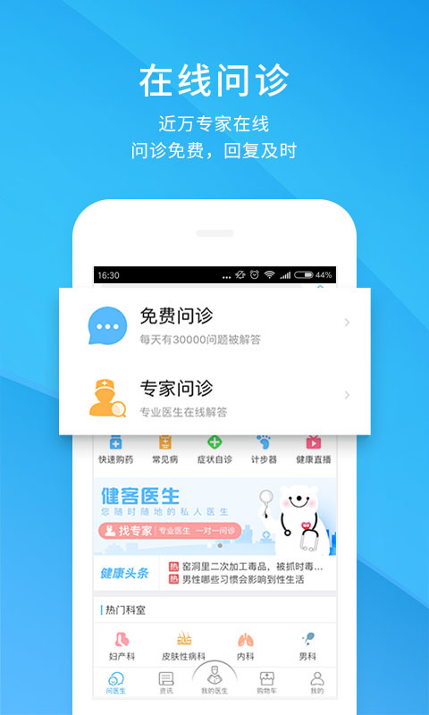 1、【快速问诊】专业医生一对一实时在线服务,免费快速的解答您的健康问题;