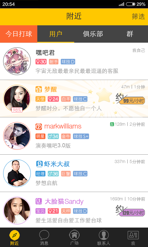 5、上班时,用“嘿吧”找到公司附近的球友晚上约一局,瞬间找到共同话题!陌生人变好友,未必要在饭桌,也可以是球桌!