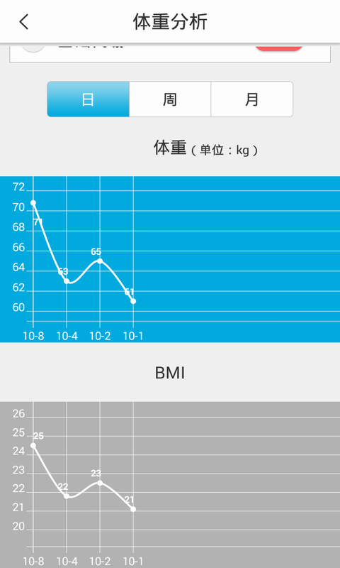1.详细记录用户体重以及BMI值变化。