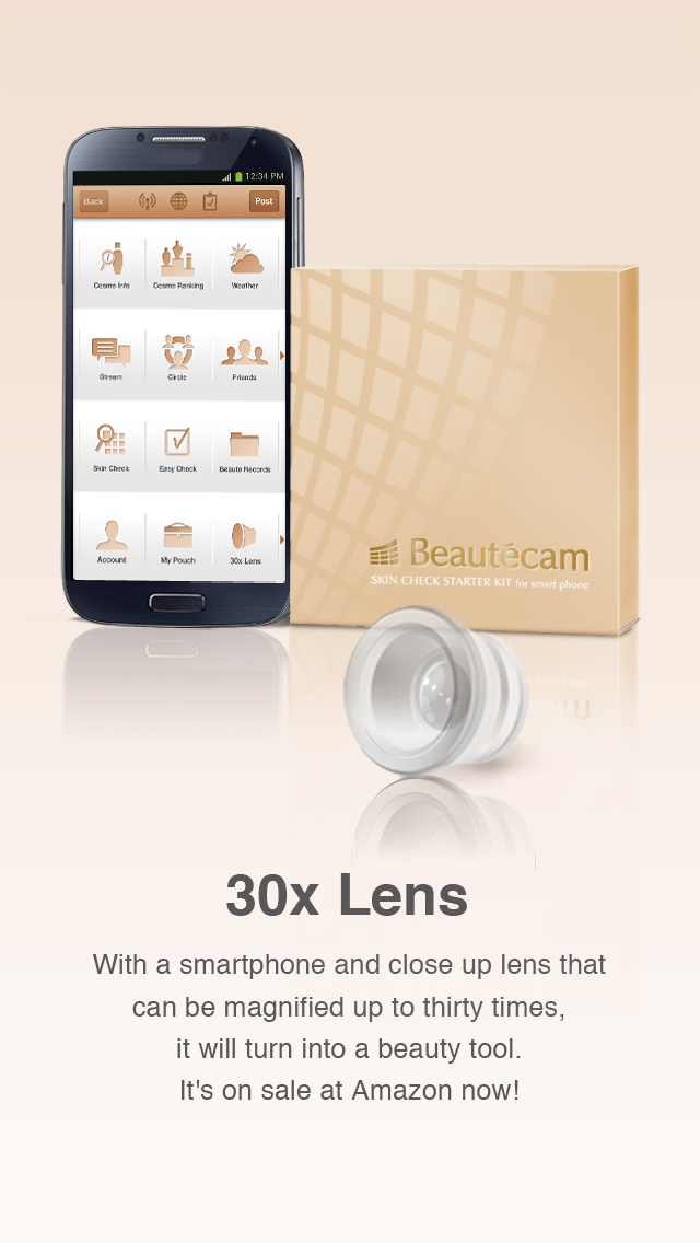 beautecamch手机版app拥有全球专利申请ー30倍放大镜头(另售)、您可以不受时间、空间限制、随时随地掌握肌肤状况,自带Beautécam美肌魔镜的功能。