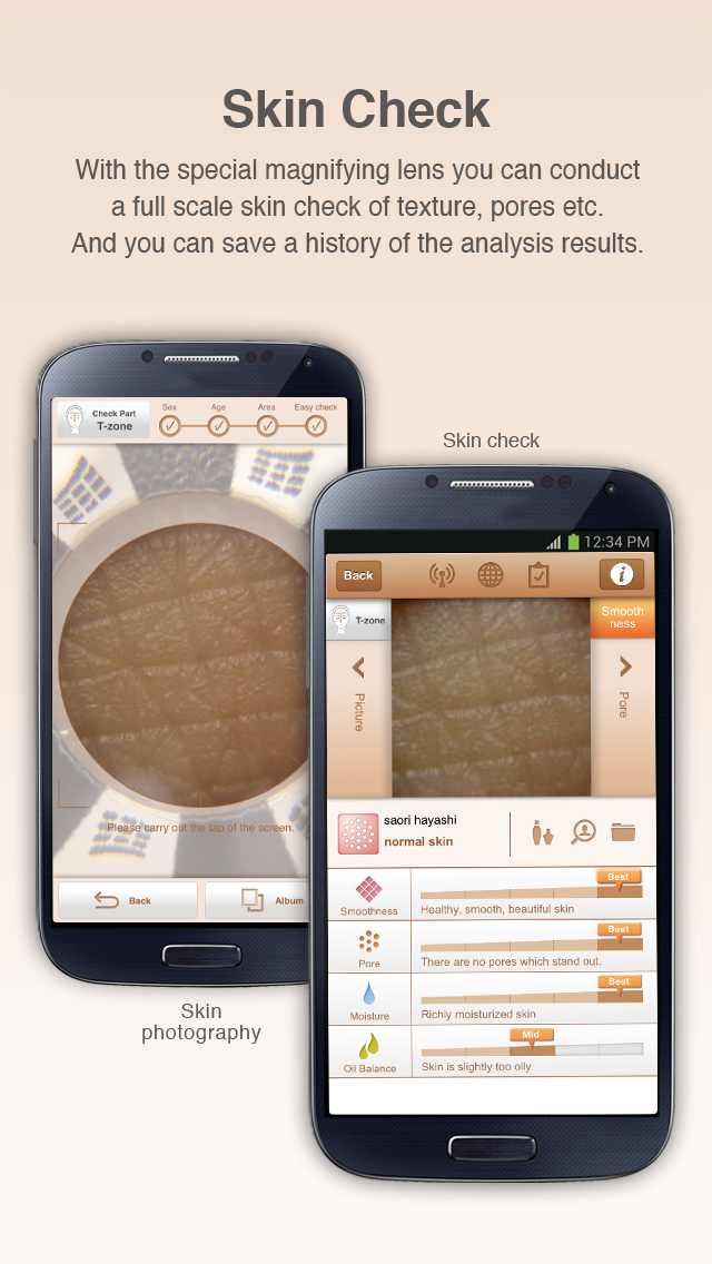 肌肤检查结果是肌肤图像经由独立系统分析结果、仅供于一般肌肤状况使用参考、请勿使用于医疗分析。亦希望您能谅解、本公司不负任何因使用本产品而生的担保责任。