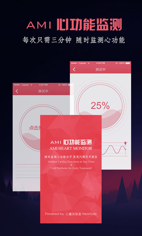 2. 便捷:用手机摄像头、闪光灯、只需3分钟,全面了解心脏功能水平、身体压力状态和自律神经平衡性。