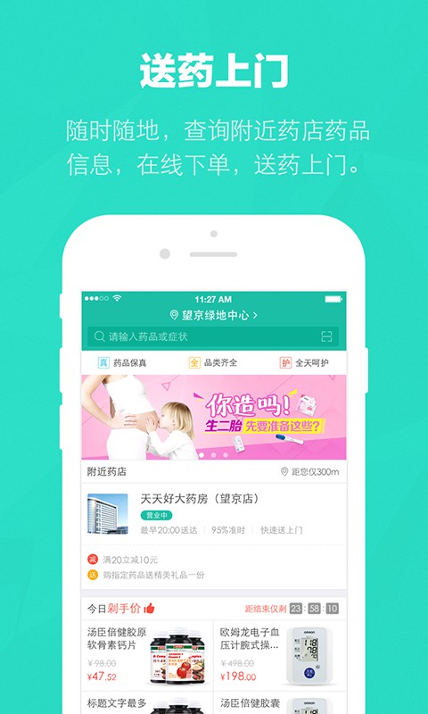 随随时随地,都可以查询附近药店药品信息在线购买,送药上门。
