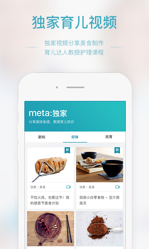 -私房治愈食谱,抚育宝宝视频,精彩潮流新知,meta:独家倾情呈现;