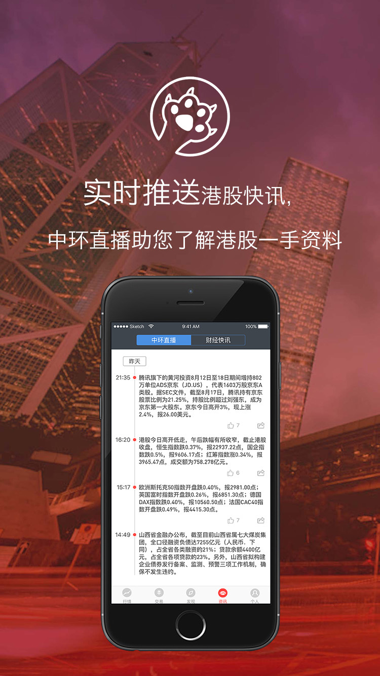 5、【丰富投资咨询】详尽的投资资料,更有24小时不间断的中环直播资讯。