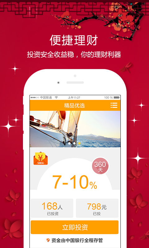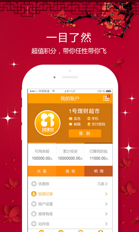 1号理财超市,以金融创新为动力,借助移动互联网技术,秉持“服务至上”的企业理念,竭诚为您提供优质的一站式理财服务。为您带来简单轻松、资金安全、风控严密、100%透明、可预期的稳定收益!
