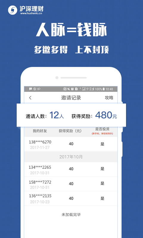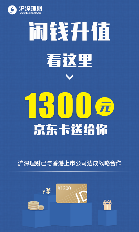 沪深理财与香港上市公司达成战略合作,正式成为上市公司战略合作金融服务平台 1.贴息活动正式上线,福利多多,活动多多 2.首投送千元京东卡活动持续中 3.人脉变钱脉,邀友赚现金 贴息活动正式上线,我们始终给用户提供安全稳定的收益~