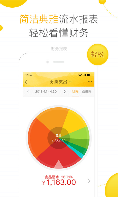 还可动态呈现图文报表,可以直观报告用户开支情况。
