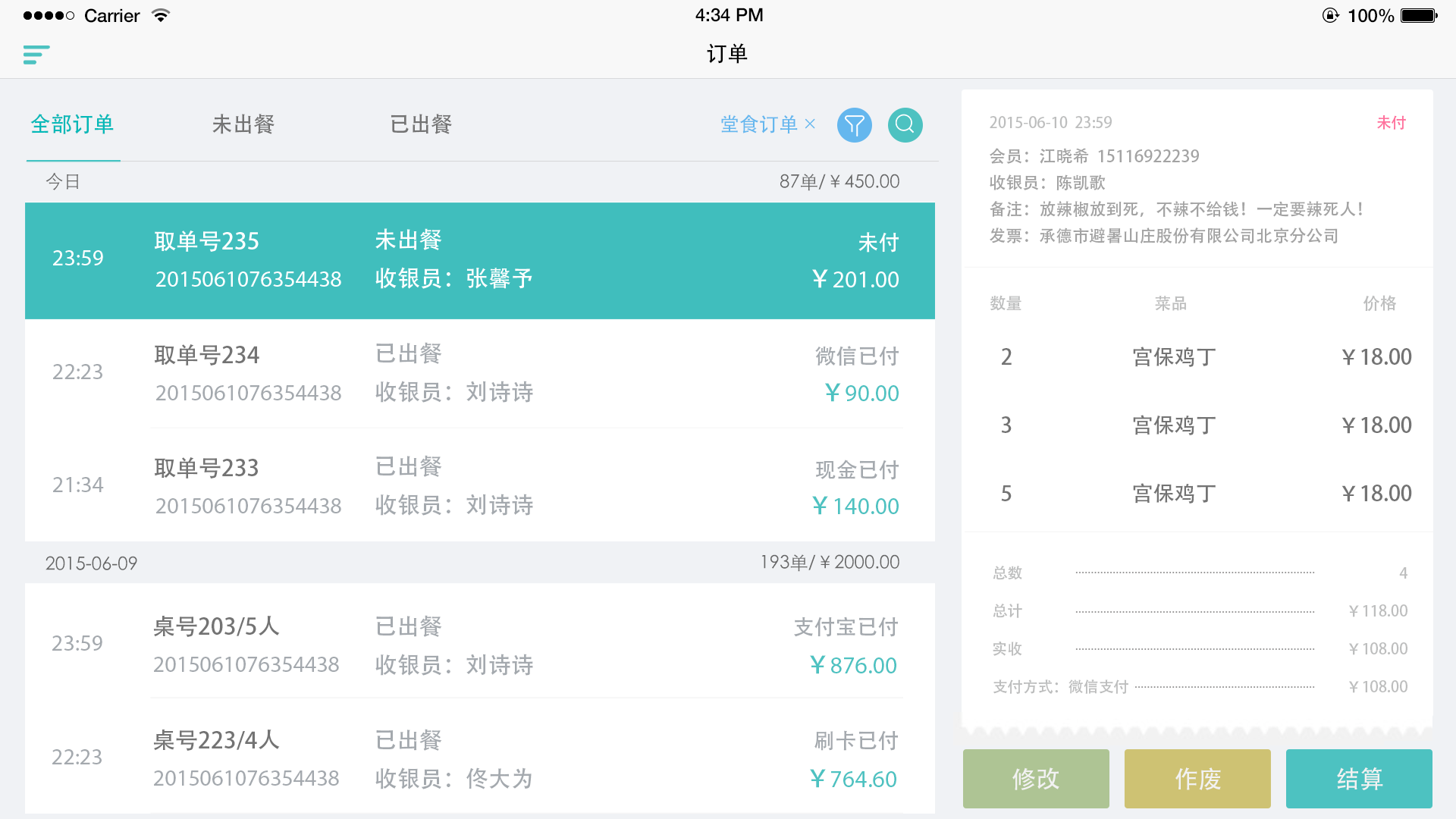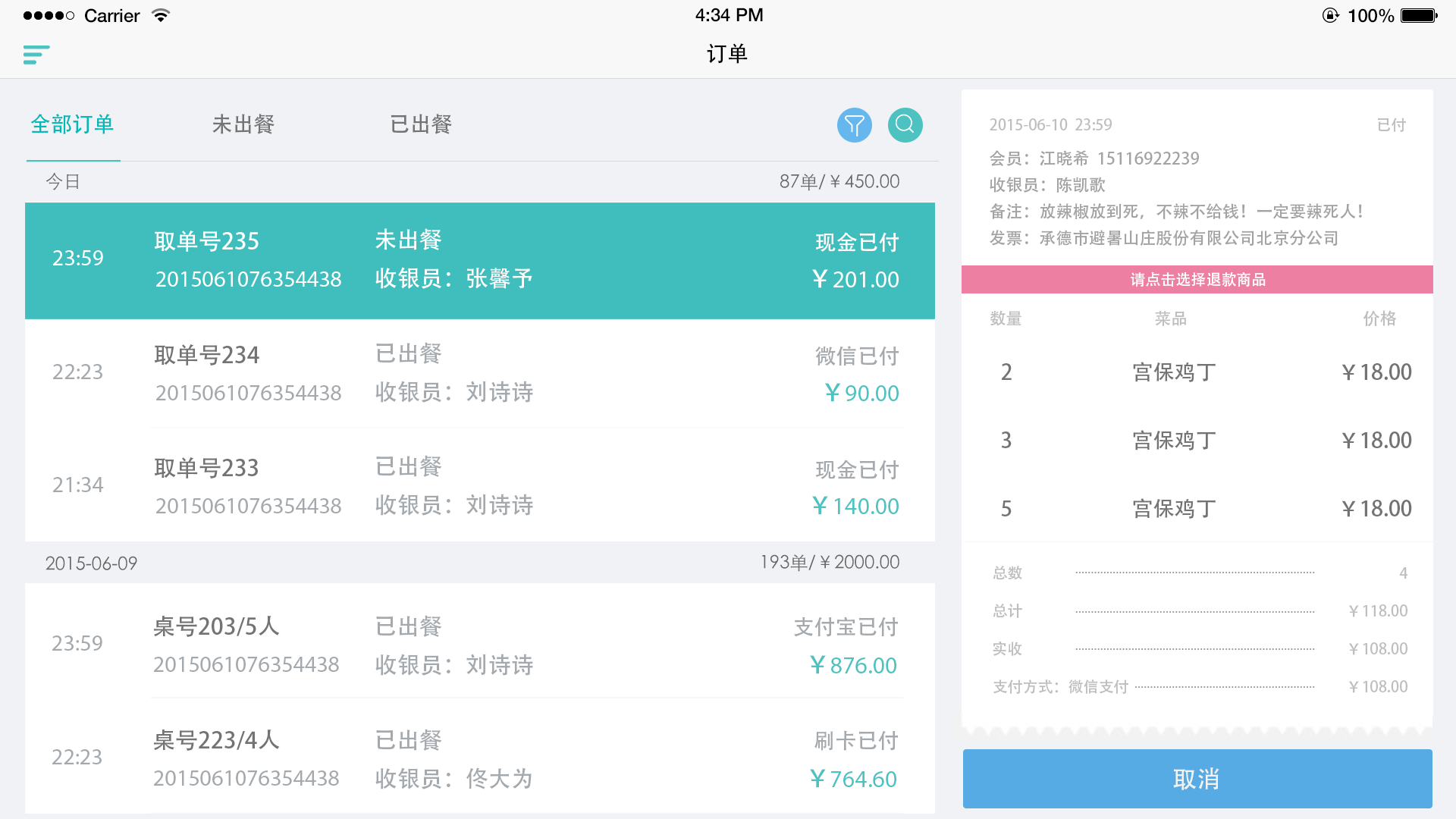 自助点单机手机版app支持全程自助点餐,全程自助收银,支持支付宝支付、微信支付等多种支付方式,收银台与后台实时联网同步,是一款非常简单好操作的手机点单软件。