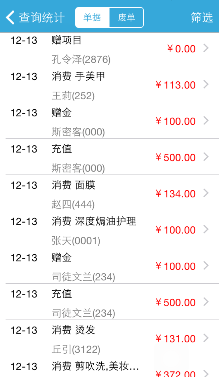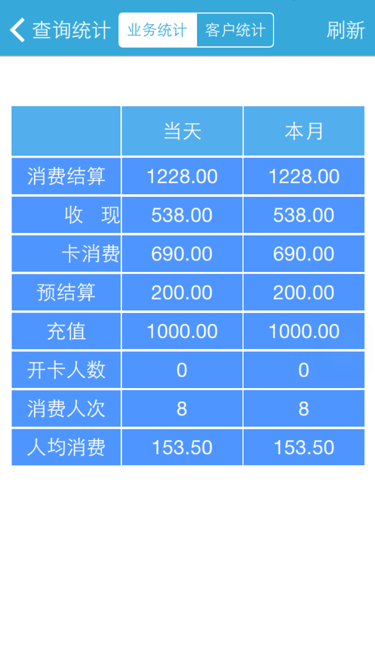 会员开卡、充值、消费,以及服务项目\/人员、单据查询、每日统计、趋势分析等。