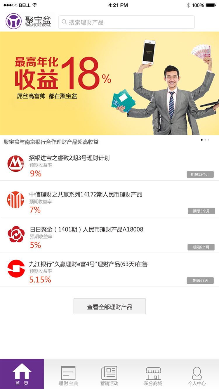 聚宝盆是由南京报业传媒集团倾力打造的理财产品聚合平台,精心筛选银行、信托、保险、券商、基金等机构发布的各类理财产品,经过大数据整合后,为每位用户打造个性化的本地理财推荐服务,是私人金融决策首选平台,是一个信息交互平台,不涉及任何线上交易。