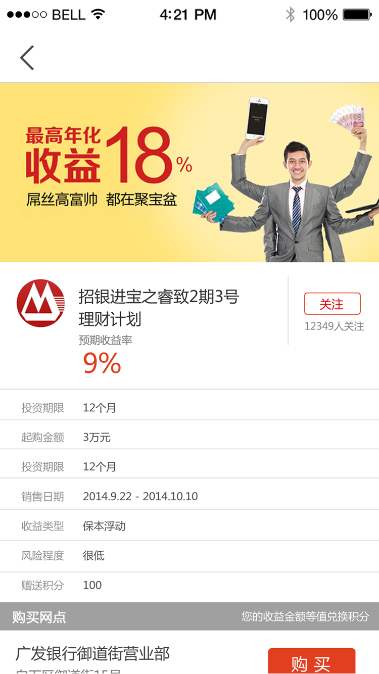 3、支持预约购买服务,由银行等专业机构理财经理提供一对第一服务;