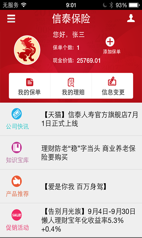 信泰保险是信泰人寿保险股份有限公司研发的一款集在线投保、保单查询、保险咨询、利率公告和在线客服于一身的无线端应用软件,用户可以通过下载安装本APP通过手机、平板电脑等无线设备对自己的保单信息、账户信息进行便捷的查询,省去您去营业厅查询、打客服电话查询等步骤。