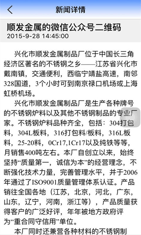 兴化市顺发金属制品厂位于中国长三角经济区著名的不锈钢之乡江苏省兴化市戴南镇,交通便利,西临宁靖盐高速,南邻328国道,3个小时可到南京禄口机场或上海虹桥机场,是生产各种牌号的不锈钢炉料以及其他不锈钢制品的专业厂家。