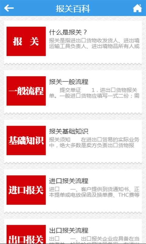 报关APP客户端,打造报关行业O2O第一平台,使用该软件能够为用户提供最新的报关资讯、最全面的报关百科知识,同时为报关企业提供一站式移动营销服务平台,为您提供更多的优质商家信息服务,助您轻松决策,操作简单,功能齐全,十分实用。