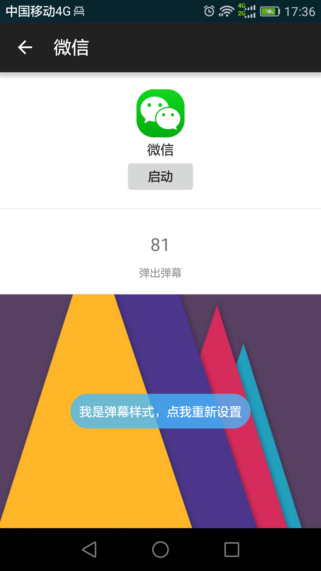 “手机弹幕”功能,是让您接受到消息时不必打开通知栏,智能把通知栏消息显示在手机屏幕上,不需要您繁琐的打开通知栏查看消息。并且此功能不需要root手机。只需您打开服务,弹出提醒需要您授权时,点击确定即可。