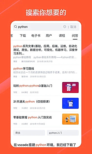 CSDN是国内著名的IT技术类论坛,一直致力于为中国的软件开发者和IT从业者提供全方位服务,帮助程序员解决了各类的技术问题。在这里可以看到最新最热的业界资讯、技术信息,还有许多同行前辈们可以指导你学习。软件里面包括移动开发、编程语言、运维、数据库、游戏开发等等内容。