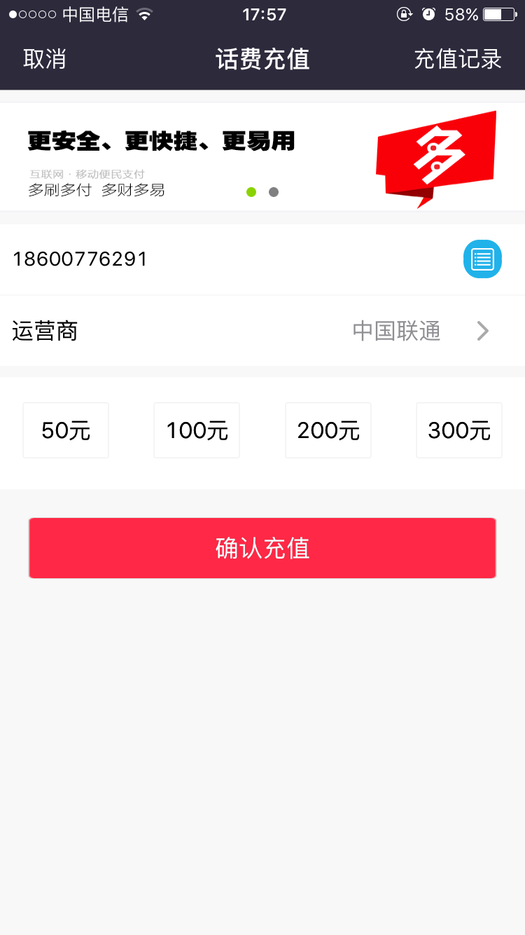 3,手机话费充值、Q币充值。后续添加更多便民服务,请密切关注多多付的最新更新。