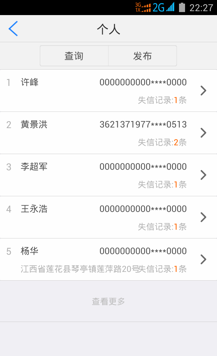 1.个人征信查询。